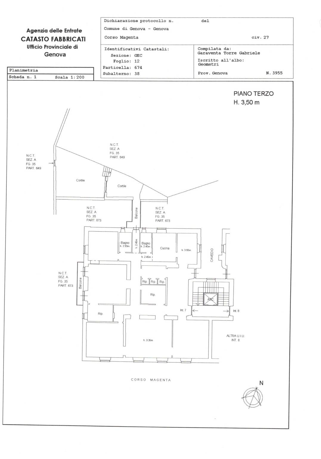 Vendesi Castelletto C.so Magenta piano alto con terrazza pensile vivibile in palazzo signorile d'epoca ristrutturato, appartamento di mq.297 con ampio terrazzo vivibile di mq 60 accessibile direttamente dall'appartamento tramite passerella, in categoria A/2, posto al terzo piano , soleggiatissimo con lunga balconata . L'appartamento è cosi composto: ampio ingresso alla genovese, salone doppio, 4 camere da letto , cucina abitabile, doppi servizi, camera armadi e due ampie dispense L'immobile necessita di una ristrutturazione di tutti i servizi , le persiane sono state sostituite recentemente in PVC , i pavimenti in graniglia lavorata a mosaico sono stupendi ed il parquet è in rovere, le porte interne sono quelle originali in legno in ottime condizioni. La location è eccellente nell'elegante Corso, comoda al centro ed a tutti i mezzi e servizi. Completa la proprietà una cantina, riscaldamento autonomo, Euro 520.000,00 ESCLUSIVA IMMOBILIARE ARDUINI&NATIVI